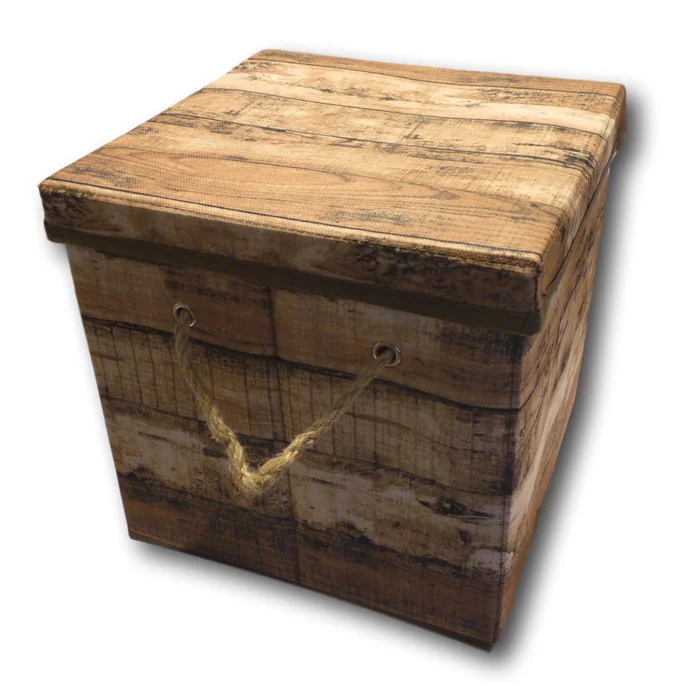 Beautiful natural wood design fabric storage box with a removable lid.