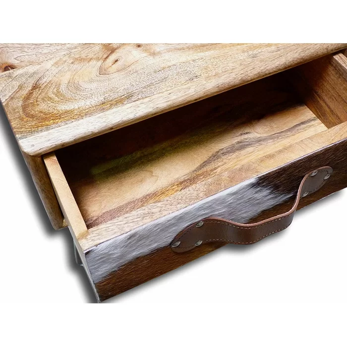 • Bedside kommode with fur leather draw frontal.