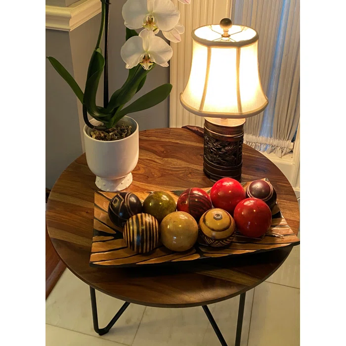 Home Furniture Living Room Furniture Sheesham Round Coffee Table With Metal Legs